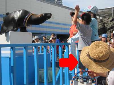 『アシカさんと遊びたいお友達は手をあげてー!』