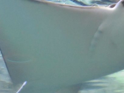 通りすがりのエイの大きな白い腹が画面いっぱいに広がっていた。