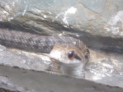 シライさんとアティナさんが爬虫類のコーナーへ向かい、ヘビのショーケースを覗くと