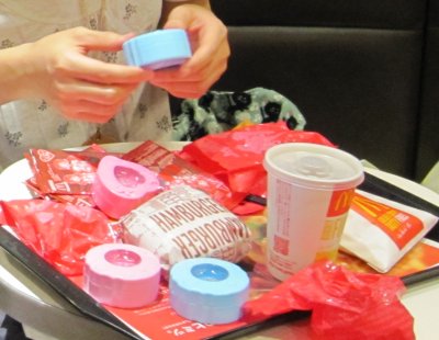ハッピーセットのプリキュアグッズに大興奮のコハルさん。