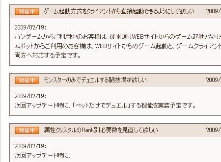 『ここを直します』みたいな運営さんの現状を載せたページだよ」