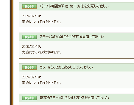 ほほぅ・・・最近は大型アップデートに向けて意見をいろいろ聞いてくれているようなのでいい傾向かと思いますね~