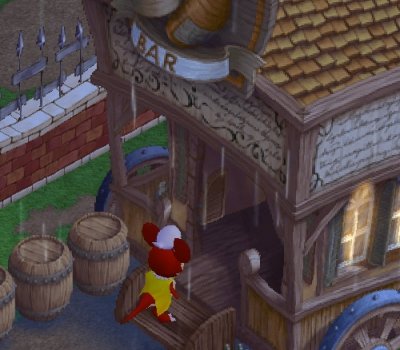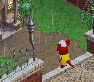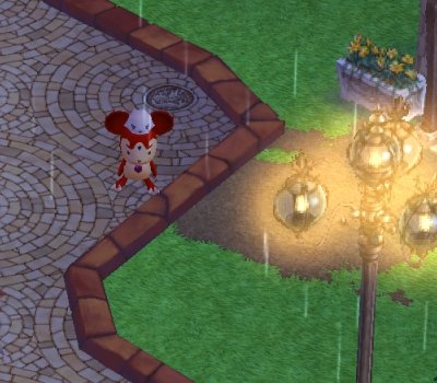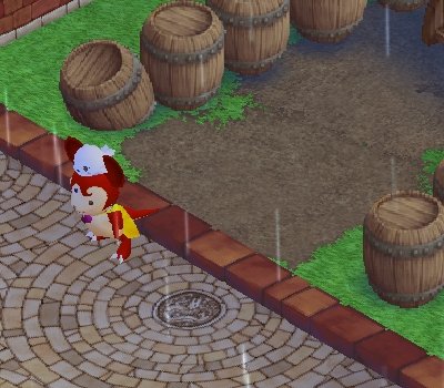いつも賑やかなファンブルグも、今日は雨の音でひっそり静まり返っています)