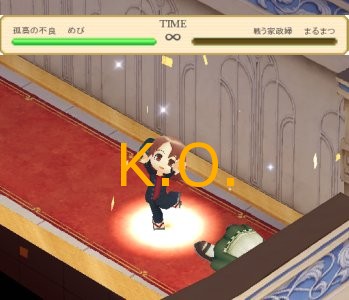今回めびがパーフェクト勝利してしまったわけですが、まるまつはテクニカルな受身スキルのみで攻撃無いらしいので・・・(ゲームバランス最低)