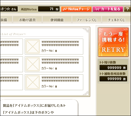 全て一定確立で1セット手に入るという魔の 「チェルトくじ」 が登場しました