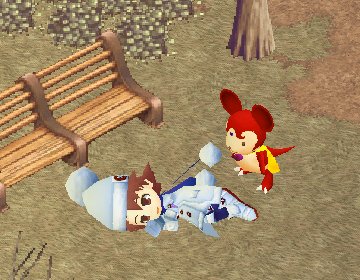 その後なぜか幽霊という設定でファンブルグに復活&滞在。途中から何故か道をそれて女装に目覚める。