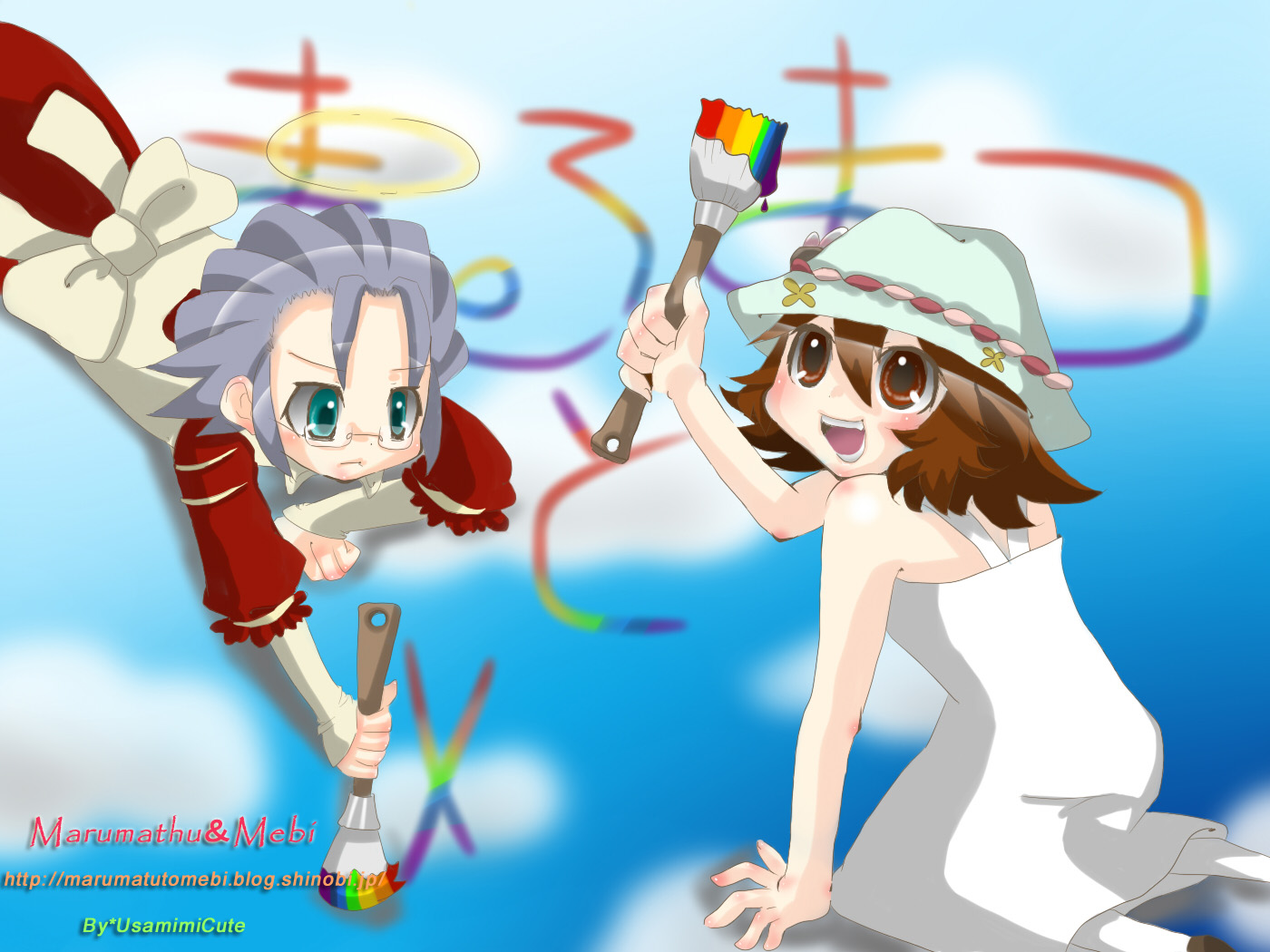 ブログ「うさ耳キュートが何か描いてる。」のうさ耳キュートさんに描いて頂いた壁紙2枚です!
