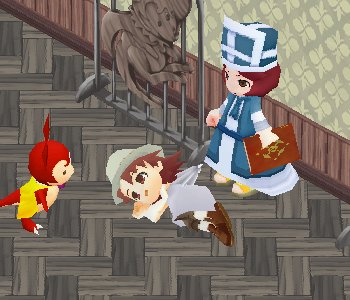 その後なぜか幽霊という設定でファンブルグに復活&滞在。途中から何故か道をそれて女装に目覚める。